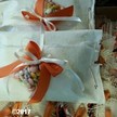 Il confezionamento è curato in modo accurato e personale con confetti del commercio equo.
