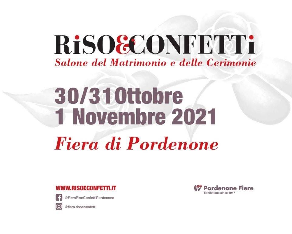 RISO E CONFETTI, il salone degli sposi e delle cerimonie in programma alla Fiera di Pordenone dal 30-31 Ottobre e 1 Novembre 2021 compie 22 anni e si conferma la fiera di settore più longeva del Nordest. Per celebrare questo importante anniversario gli organizzatori hanno in serbo molte soprese.